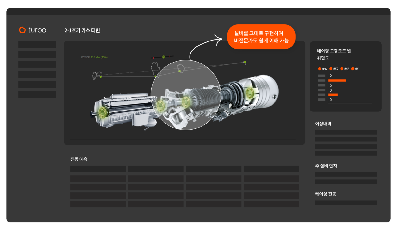 터보의 건전성 모니터링 기능을 제공하며 과거 발생한 이상 내역 확인이 가능합니다. 또한, 각 베어링의 고장 모드 별 위험도와 주요 운전인자를 제공합니다.